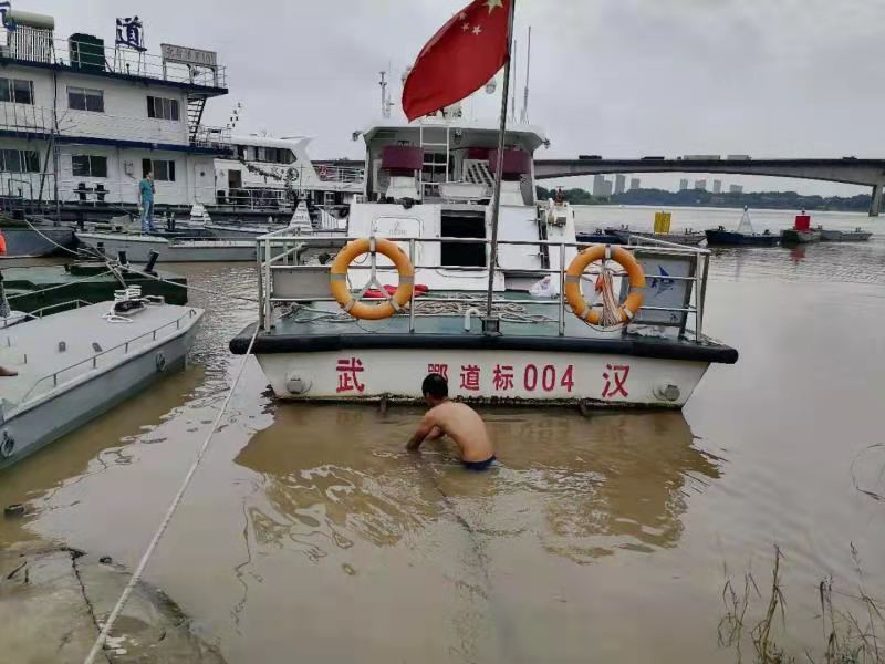 各部门立即行动,航道科在龙王庙、崔家墩水域悬挂流速信号标(白天悬挂黑球一个,夜间显示红光环照灯一盏),每12小时测量流速1次,保障汉江武汉段水路交通的正常秩序。8月16-18日,航道科共开航16次(含突击检查4航次),出动人员128人次,对在设助航水标、助航岸标进行了检查,及时收回、固锚加缆处理助航设施234座。高流速期间,接市民热线和执法大队转来的电话3通,开航3次,出动人员11人次,搜救上游流下来的水标2条,回收被上游水标碰撞的备用水标27条。