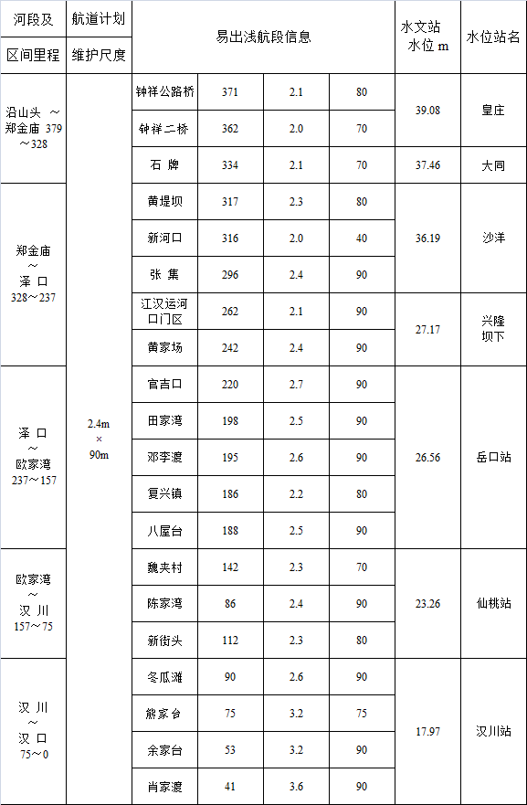 汉江河口至兴隆段航道尺度信息(2022年12月12日9时)