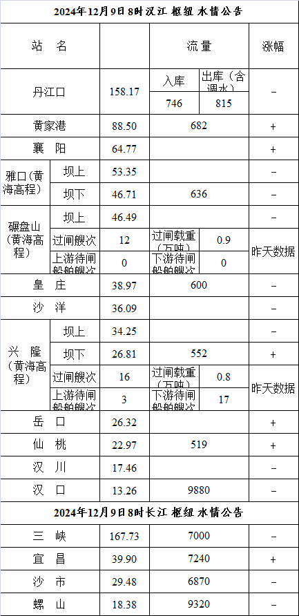 水情公告(2024年12月9日8时)
