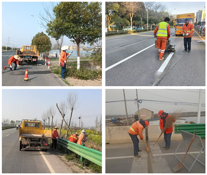 二是扮靓路域焕新颜。加大路域环境整治力度,精细修剪道路两侧入侵行车空间的树枝,对高路肩、低洼路肩进行培填,修复破损边沟,重新施划道路污损标线,开展路面防洒落治理专项行动,增加清扫保洁频次,及时清除抛洒物;联合交通综合执法、交警等部门加大辖区公路及公路用地范围内障碍物、占道摊点的整治,全面提升路域环境。截至目前,累计完成路面清扫保洁649公里、整修路肩17691米,整修边坡4433平方米、清理边沟5573米、修剪路肩边坡草13513平方米。