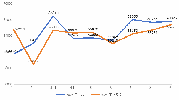 一是危货运输具有明显季节波动性,春秋季为危货行业的运输高峰期。2023年4月、8月和9月的运输量显著高于其他月份,2024年4月、8月和9月的运输量也相对较高。