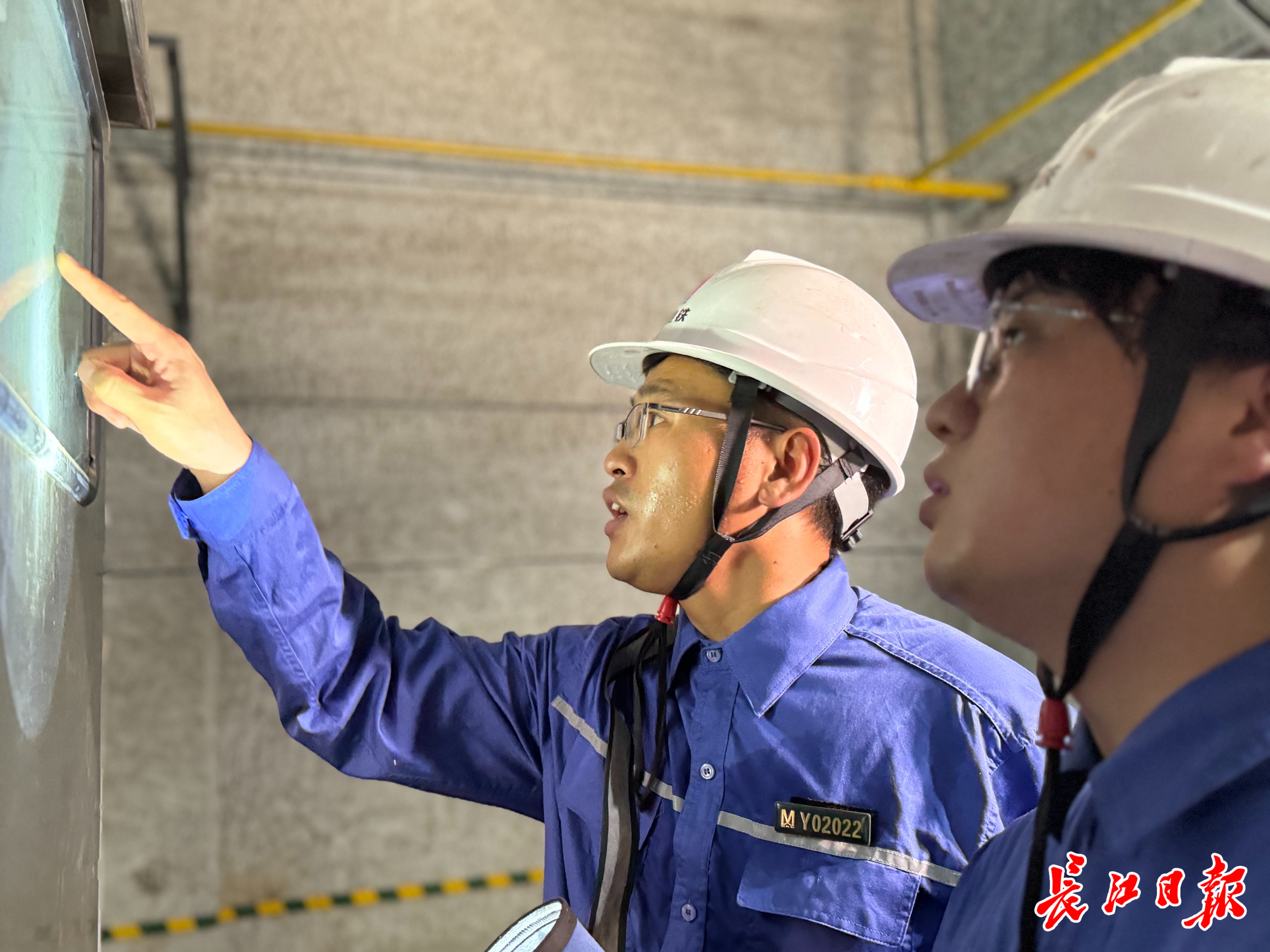 “环境温度46℃,油温61℃,变压器负荷33.2兆瓦,本体油位正常,控制箱内无局部过热现象,有载调压开关位置指示正确。”12日中午12时45分,董锐等人回到武汉地铁7号线徐家棚主变电所。只见他身着长衣长裤工作服、头戴安全帽、脚穿劳保鞋,和同事肖欣宇开始了110千伏变电设备的高温特巡特护工作。