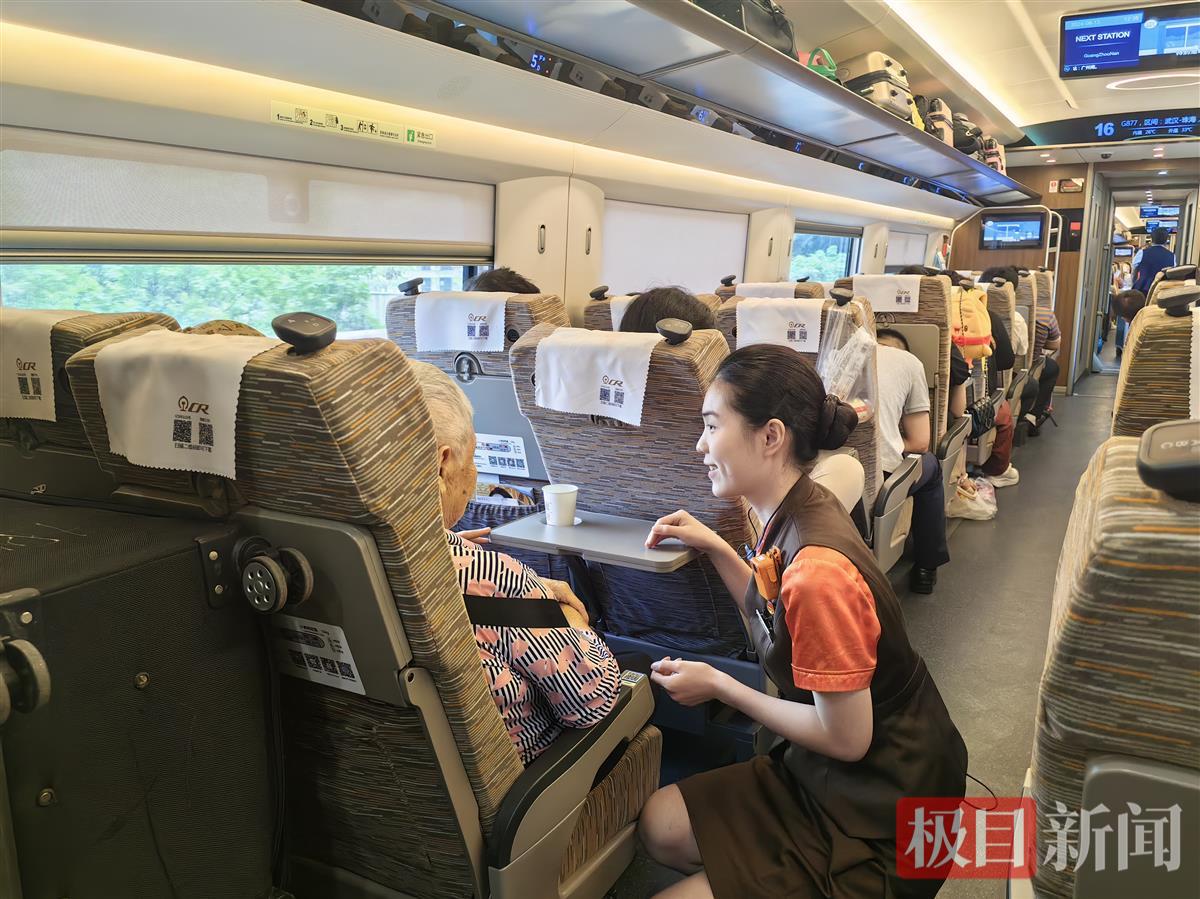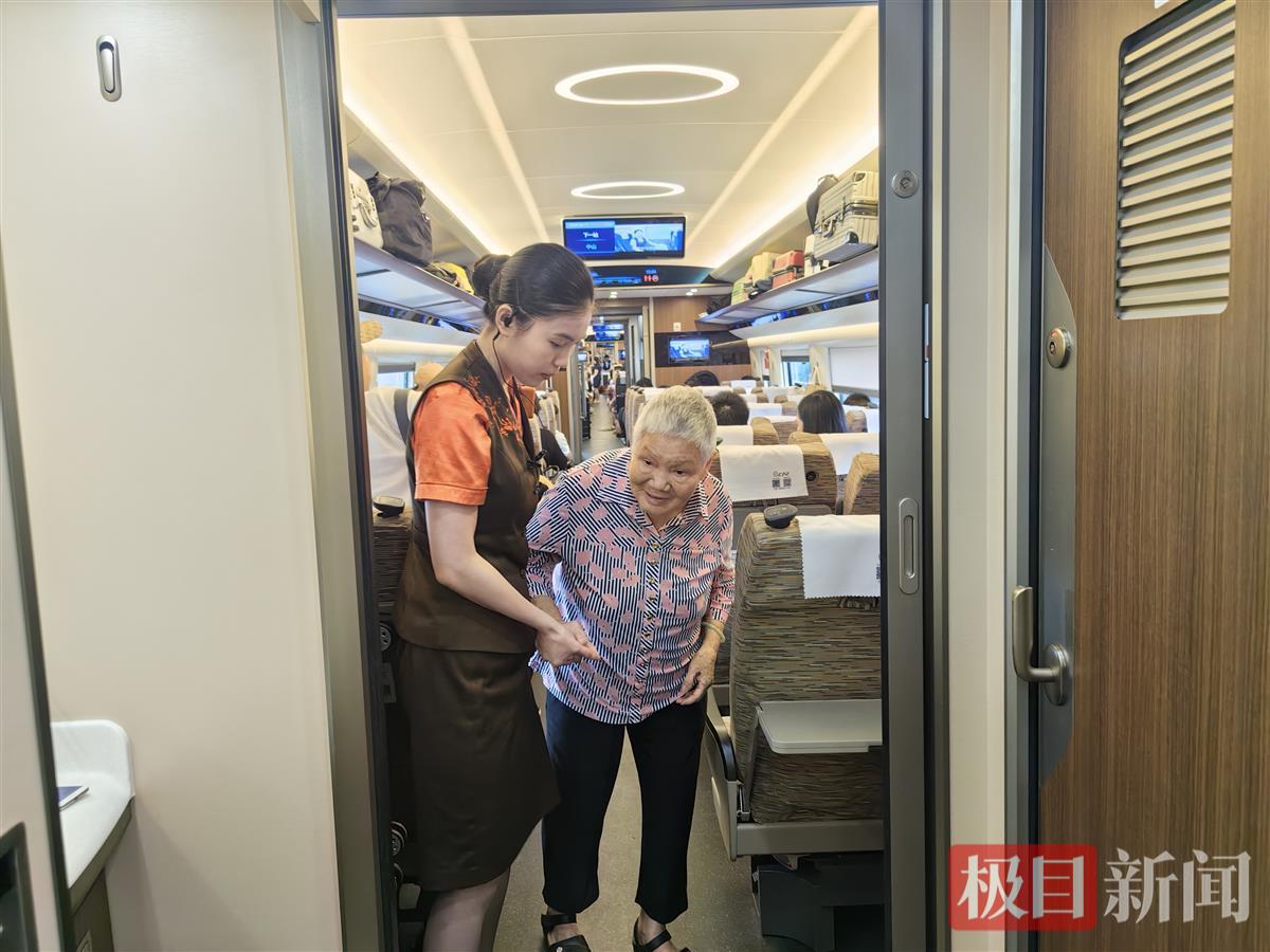8月13日,由武汉客运段担当的G877次列车在长沙南站到站停车,列车员张颐怡在车门立岗时,发现一位步履蹒跚、头发花白的老人提着行李箱准备上车。张颐怡见状,马上上前帮老人拿行李,并将其送到座位上。经询问,老人80岁高龄,独自乘车。开车后,张颐怡为老人介绍车厢内服务设施,途中一直时刻关注老人的需求。列车到站后列车员张颐怡帮忙拿取行李并搀扶老人下车,老人表示十分感谢,并称道:“高铁的服务越来越暖心了。”