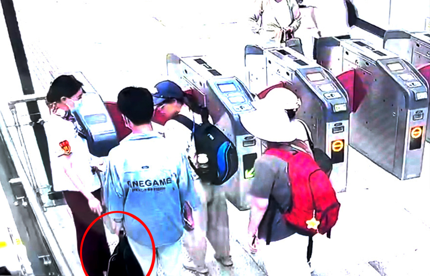 乘客在火车上拿错包进入地铁站才发现。