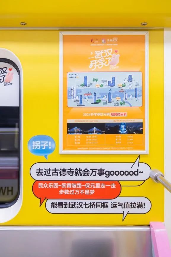 强烈的视觉冲击与“武汉方言”、”热梗”相结合,直接将地铁的青春氛围感拉满,随手便可拍出满屏的青春气息。