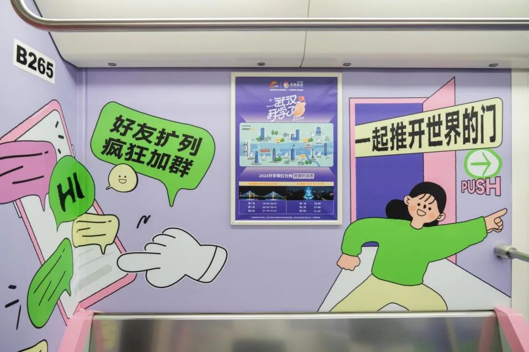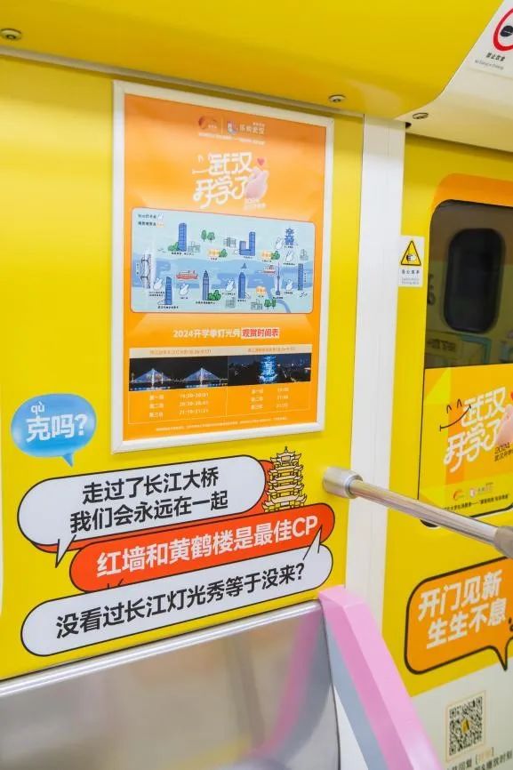 在这个特别的开学季,地铁2号线不仅担任着承载新生们对武汉印象与记忆的起点,更是武汉这座城市向每一位新生发出的最诚挚的邀请函,邀请新生们去共同体验一场别开生面的闪耀迎新礼。