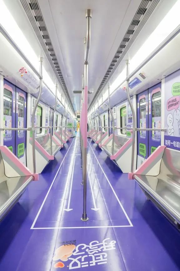 当2号线准时进站的那一刻,眼前接连呈现的是多巴胺视觉活力。踏入车厢内,每一处细节都经过精心设计,无不透露着用心与温度。