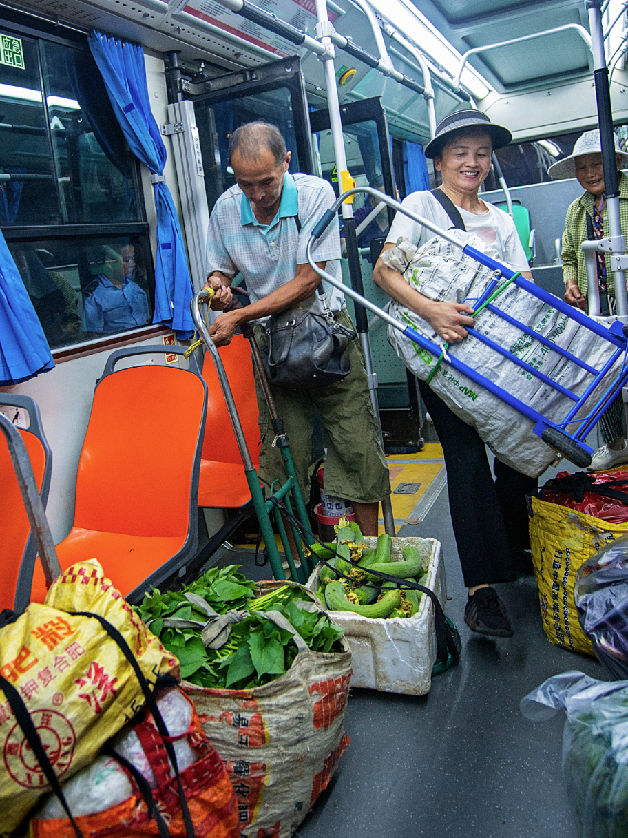 乘客中,不乏从汉川专程赶来的菜农。年过八旬的李婆婆,和老伴专程开着三轮车驱车十几公里来赶惠农专线。李婆婆说,新沟镇和汉川接壤这一块儿人流量少,且种菜大户多,蔬菜到了武汉市内才有更好的销路,惠农公交为周边菜农们提供了一条便捷的蔬菜销售通道。