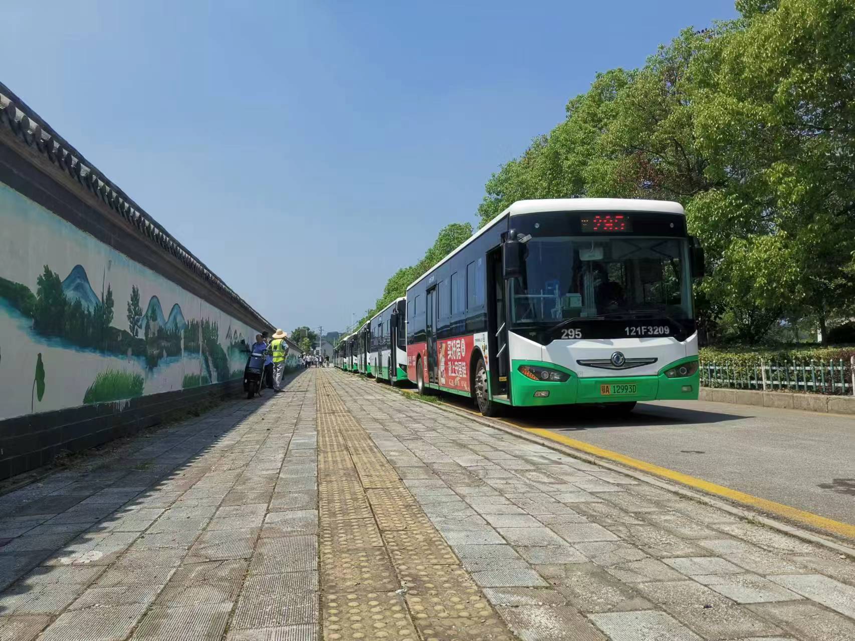 汉南薇湖路公交场站,公交车辆整装待发,为即将到来的国庆假期做好准备。