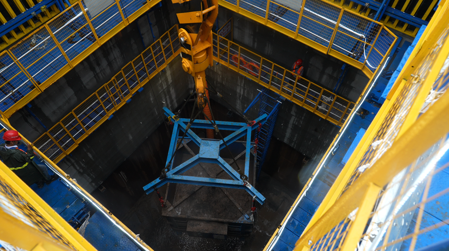 5月15日,武汉第13座长江大桥——汉南长江大桥迎来重大进展:相当于14个篮球场大小的超级沉井启动首次下沉。