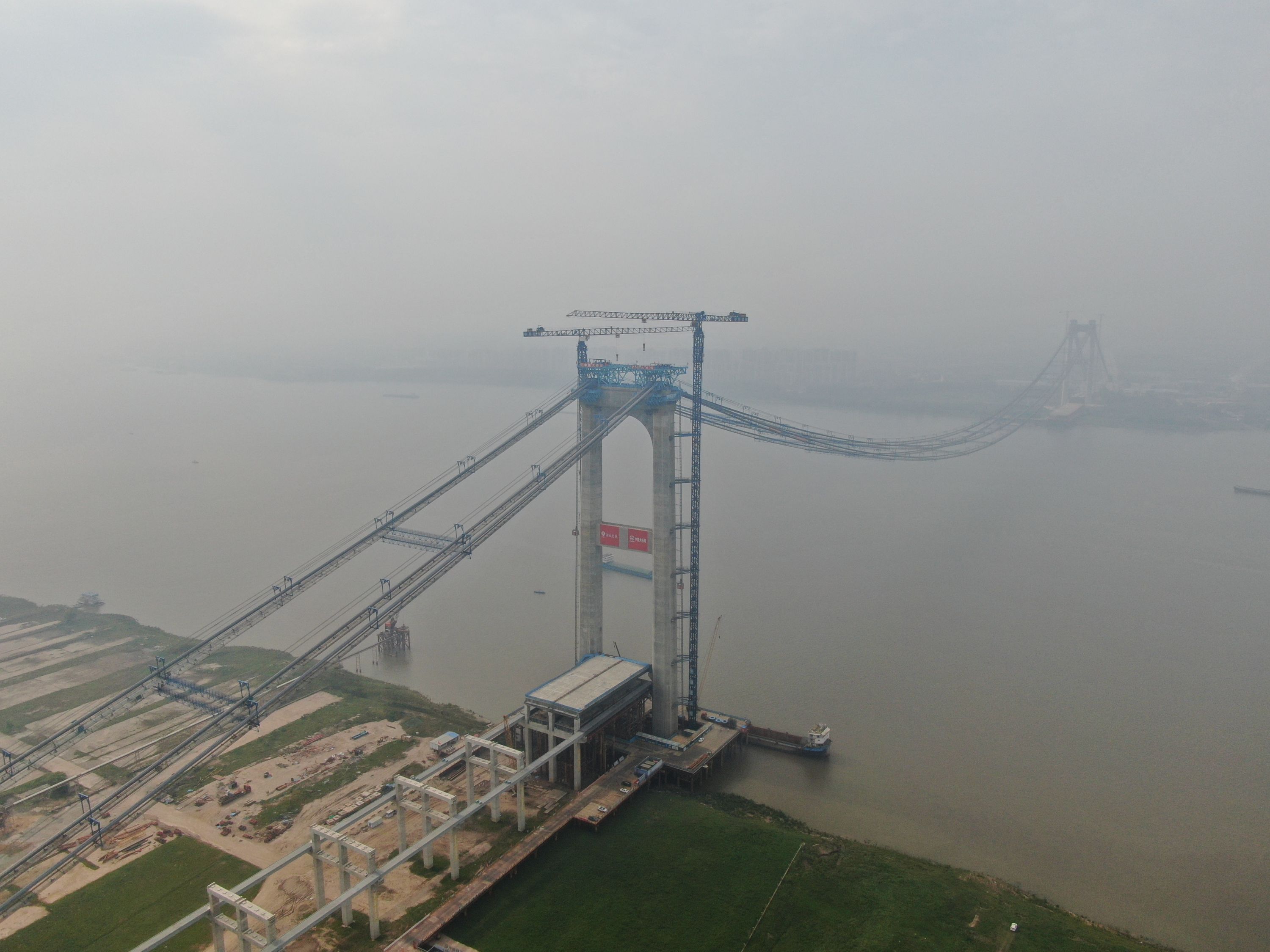 湖北交投集团燕矶长江大桥公司相关负责人介绍,每根主缆直径约1.04米,单根长度约3000米,均由217根索股组成,而每根索股又由127根直径为5.6毫米的锌铝合金镀层高强钢丝构成,这些主缆如同大桥的 “生命线”,承担起整座桥的重量分布重任。