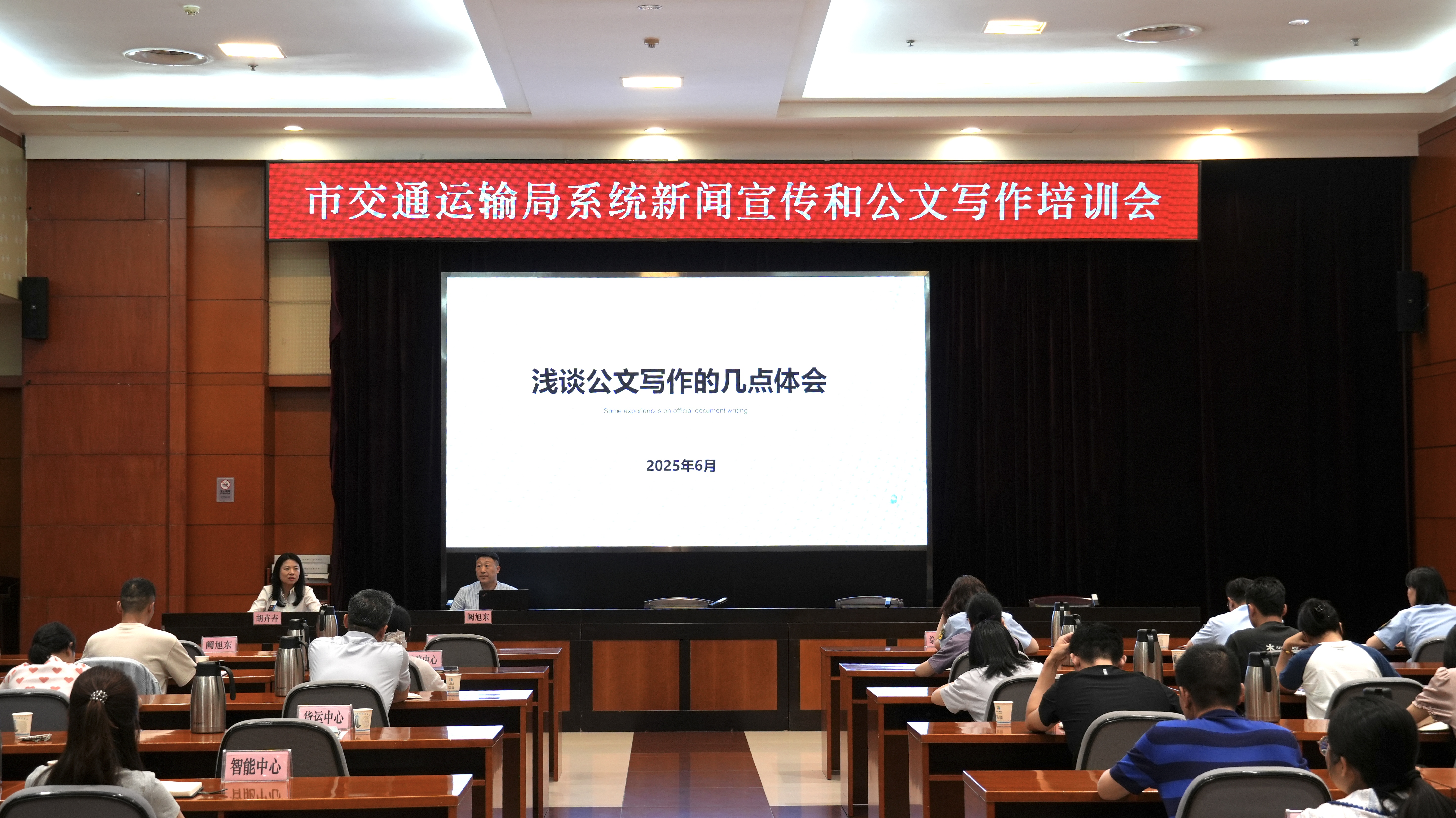 为贯彻落实省市“干部素质提升年”工作要求,提高交通运输系统干部的新闻宣传能力和公文写作水平,切实发挥“以学赋能 锻造精兵”作用,6月20日上午,市交通运输局组织开展新闻宣传和公文写作专题培训会。局机关及局属单位近80名业务骨干参训。