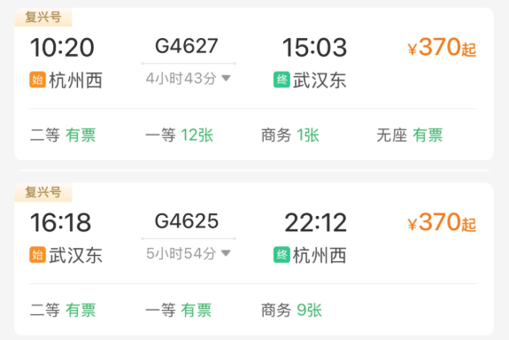 武汉东站往返杭州西站的高铁将在今年暑运期间开行,G4627/6杭州西站10:20始发,15:03抵达武汉东站,全程4小时43分;G4625/8武汉东站16:18始发,22:12抵达杭州西站,全程5小时54分。
