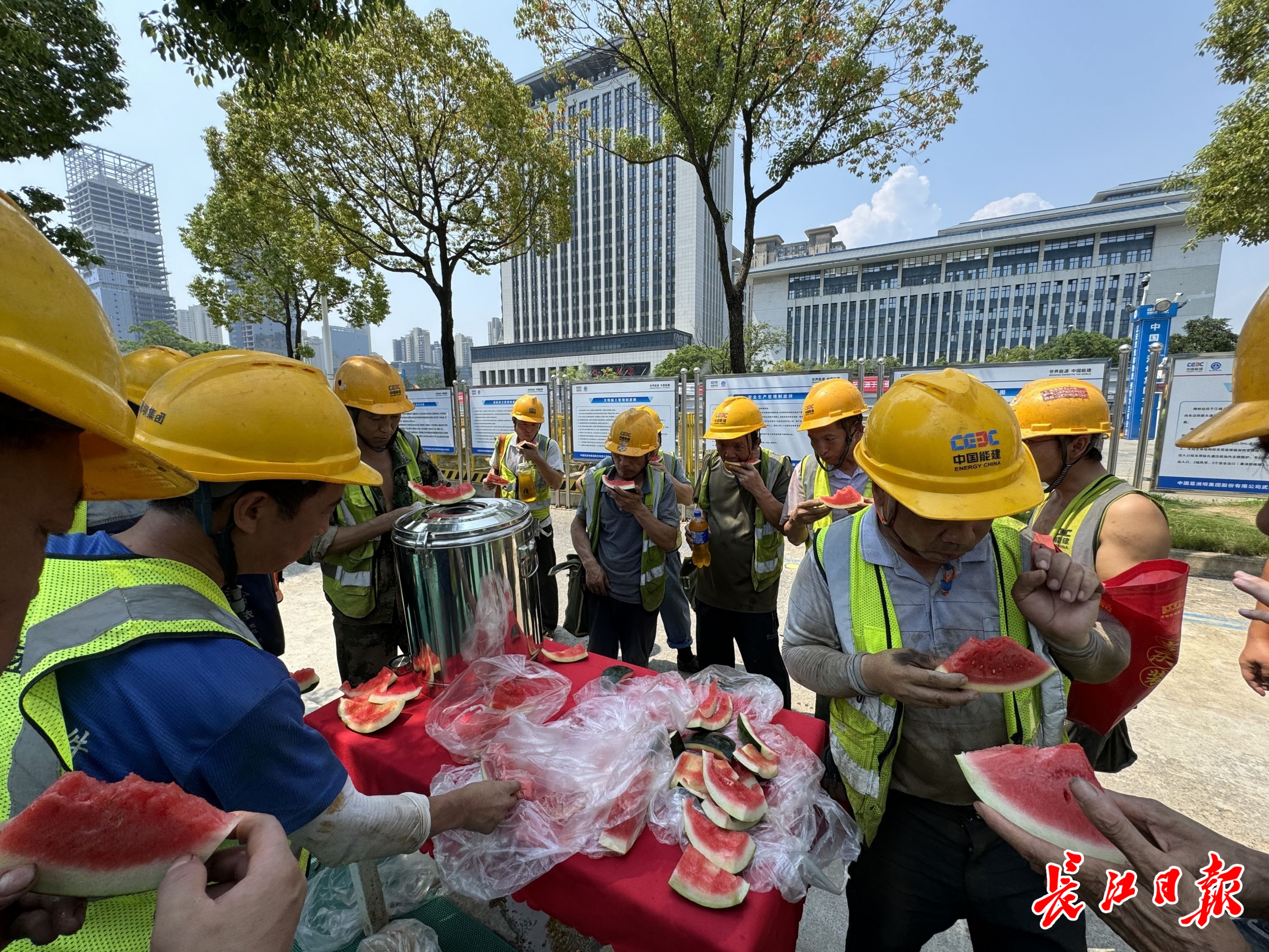 为了保障工友们的安全,冯魏和团队费了不少心思。施工单位中国能建葛洲坝集团该项目负责人介绍,地面上,“直面太阳”的作业,他们果断调整作息,上午10时至下午4时,让工人们躲开最毒辣的日头好好休息。地下盾构虽然躲开了阳光直射,但闷热依旧,原作业时间不能停,他们就变着法子送清凉。除了西瓜,凉茶、绿豆汤、酸梅汤也每天轮流煮好,送到各个作业点。