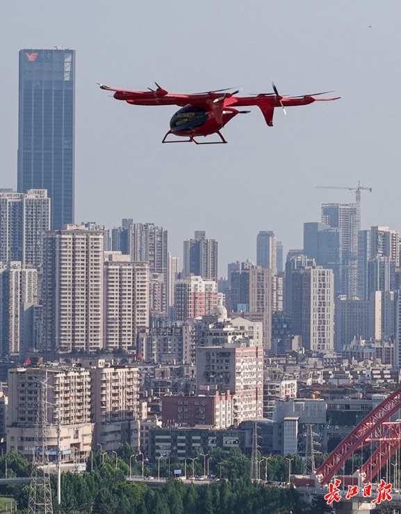 7月15日,由汉阳造·峰飞自主研发的2吨级eVTOL航空器飞行在武汉上空。