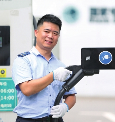8月8日下午1时许,公交362路驾驶员刘其炎结束早班运营任务,回到位于民族大道的冯徐村场站。线路管理员倪熙荣走进驾驶室,记录车辆仪表盘上显示的剩余电量,提示刘其炎下午2时后开始为车辆充电补能。