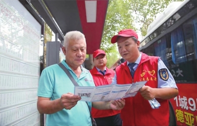 公交志愿者向市民宣传“武汉公交”App。