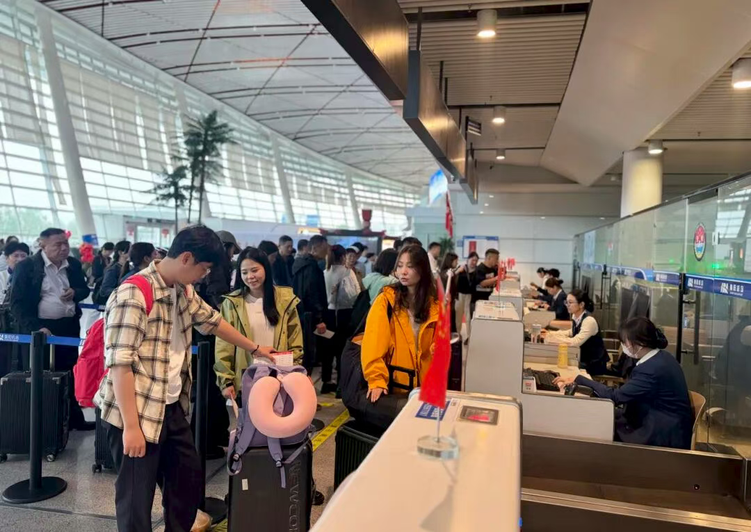 双节期间,湖北省内支线机场均高效完成旅客运输保障任务。其中,恩施机场同比增长14%,并于10月7日开通至曼谷国际航线,至此恩施机场已开通越南河内、胡志明市,蒙古乌兰巴托,中国香港,韩国首尔等6条国际及地区航线;襄阳机场同比增长12%,在假期首日迎来客流高峰,全天保障航班64架次,运送旅客7864人次,创2025年以来单日旅客吞吐量新高,航班放行正常率达到100%,运行效率与服务保障能力实现双提升;荆州机场同比增长16%,完成旅客吞吐量3.2万余人次,也是首个客流量突破3万人次的黄金周。十堰机场和宜昌机场同比分别增长129%、30%,分别完成旅客吞吐量4.3万余人次和9.7万余人次。