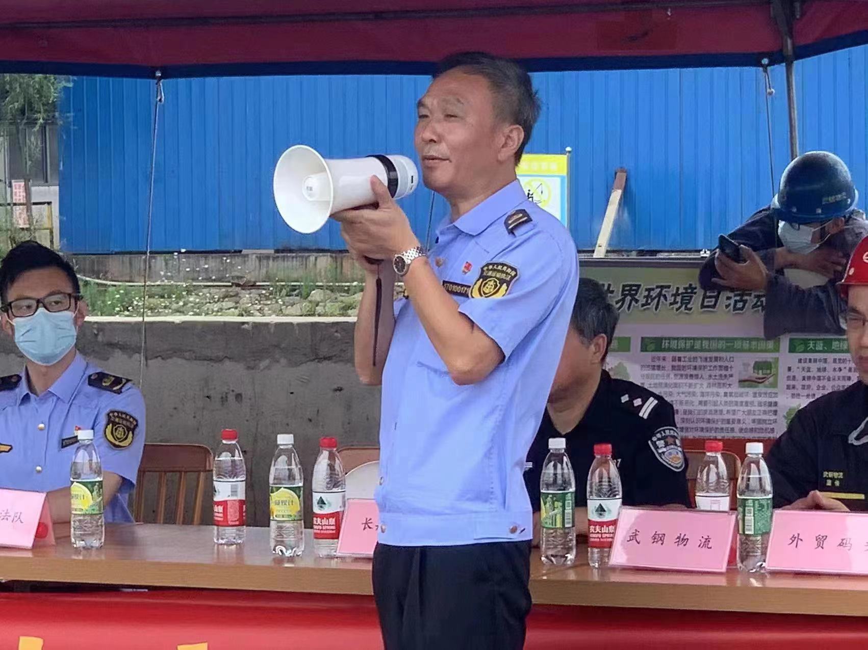 今年6月是第21个全国“安全生产月”, 为进一步提高辖区港口企业安全防范意识,提升突发性事件应急处置能力。6月23日上午,市水路交通运输执法支队六大队联合武汉海事局危防处、青山海事处等单位,参与指导武汉武钢港务外贸码头有限公司危险货物突发事件应急演练活动。