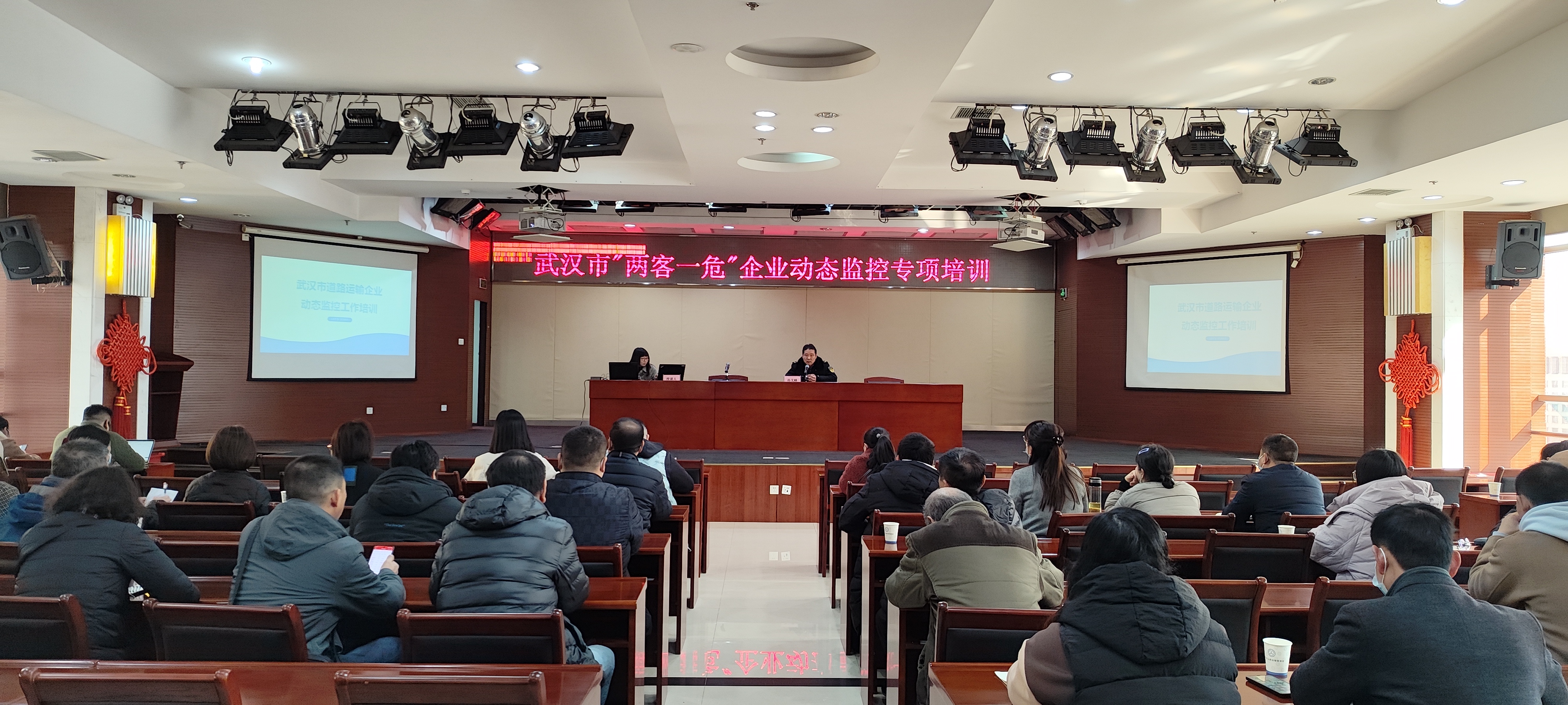 本次培训综合执法支队专门聘请湖北车安达信息科技有限公司、武汉云途安行科技有限公司两家第三方动态监控服务商技术负责人分别对企业和执法人员开展培训授课。