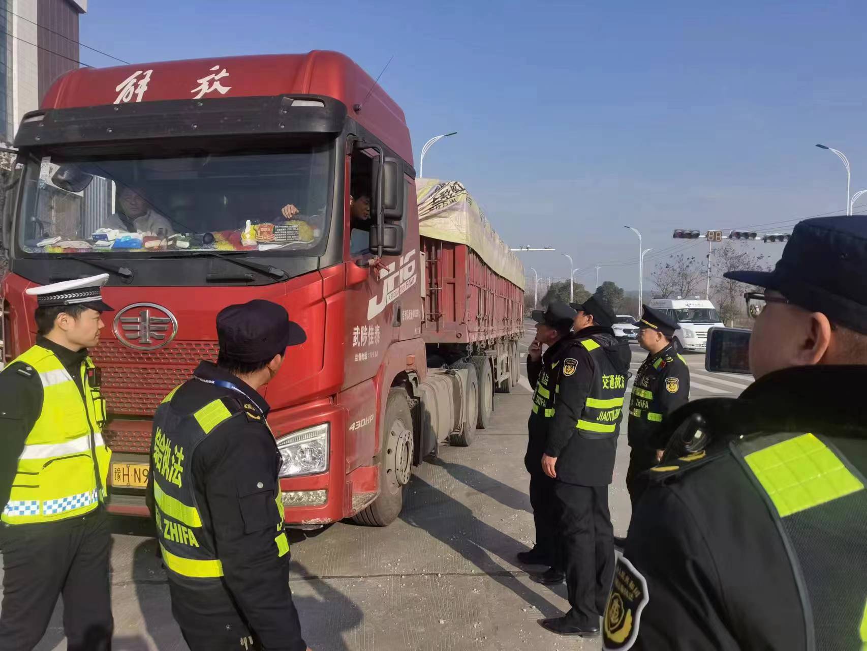 1月5日,武汉市治超办(简称“市治超办”)组织新洲区治超办、黄冈红安县治超办开展新年度首次跨市域联合治超行动。