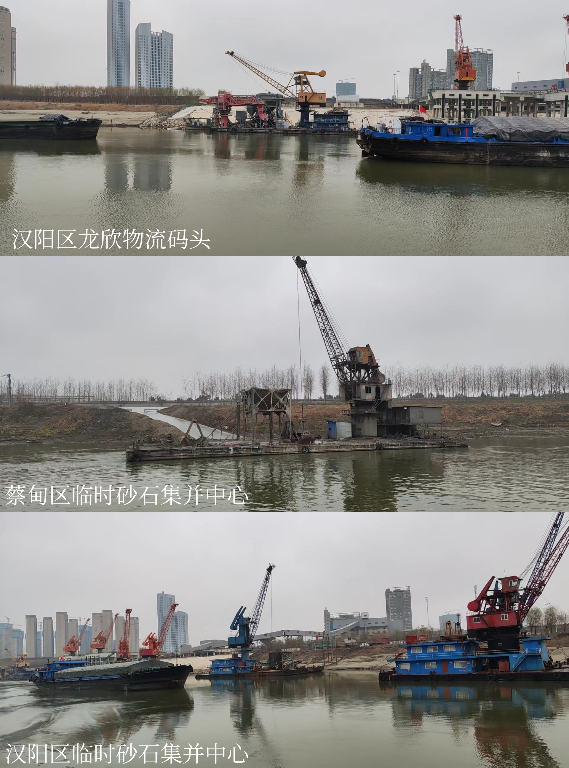 汉江方向,蔡甸区临时砂石集并中心,汉阳区临时砂石集并中心、龙欣物流码头无船舶靠港,舵落口港埠公司码头开展件杂货作业。长江上游方向,平鄂煤码头、洪山临时砂石集散中心、军山船厂码头、海波重科码头未发现砂石作业。长江下游方向,亚东水泥码头、娲石水泥码头、武港集团阳逻港埠公司、新洲区石油码头、阳逻汽渡码头、航科物流码头均作业正常。
