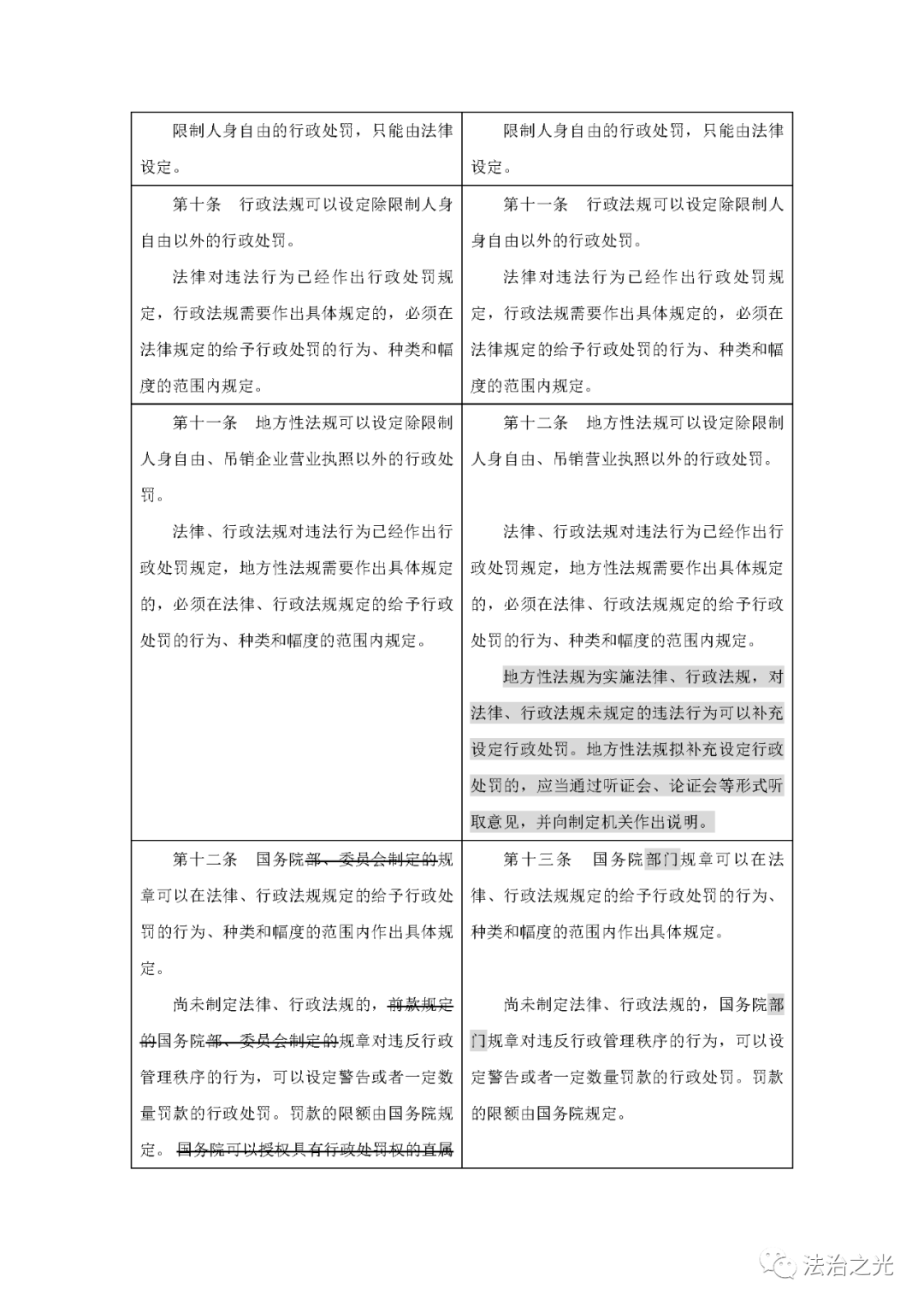 现行行政处罚法第十一条规定:“地方性法规可以设定除限制人身自由、吊销企业营业执照以外的行政处罚。”“法律、行政法规对违法行为已经作出行政处罚规定,地方性法规需要作出具体规定的,必须在法律、行政法规规定的给予行政处罚的行为、种类和幅度的范围内规定。”多年来,一些地方人大同志反映,现行行政处罚法中有关地方性法规设定行政处罚的规定限制过严,地方保障法律法规实施的手段受限,建议扩大地方性法规的行政处罚设定权限。为充分发挥地方性法规在地方治理中的作用,增加规定:地方性法规为实施法律、行政法规,对法律、行政法规未规定的违法行为可以补充设定行政处罚。地方性法规拟补充设定行政处罚的,应当通过听证会、论证会等形式听取意见,并向制定机关作出说明。(修订草案第十二条第三款)
