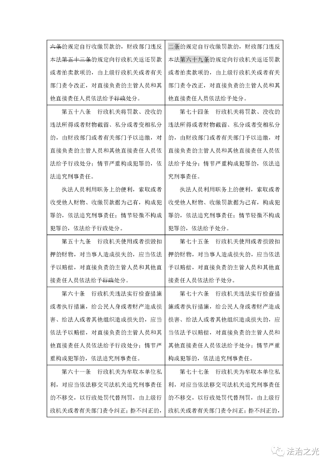 为贯彻落实行政执法责任制和责任追究制度,强化对行政处罚行为的监督,作以下修改:一是增加规定罚款、没收违法所得或者没收非法财物拍卖的款项,不得同作出行政处罚决定的行政机关及其工作人员的考核、考评直接或者变相挂钩。二是增加规定县级以上人民政府应当定期组织开展行政执法评议、考核,加强对行政处罚的监督检查,规范和保障行政处罚的实施。(修订草案第六十九条第三款、第七十条第一款)