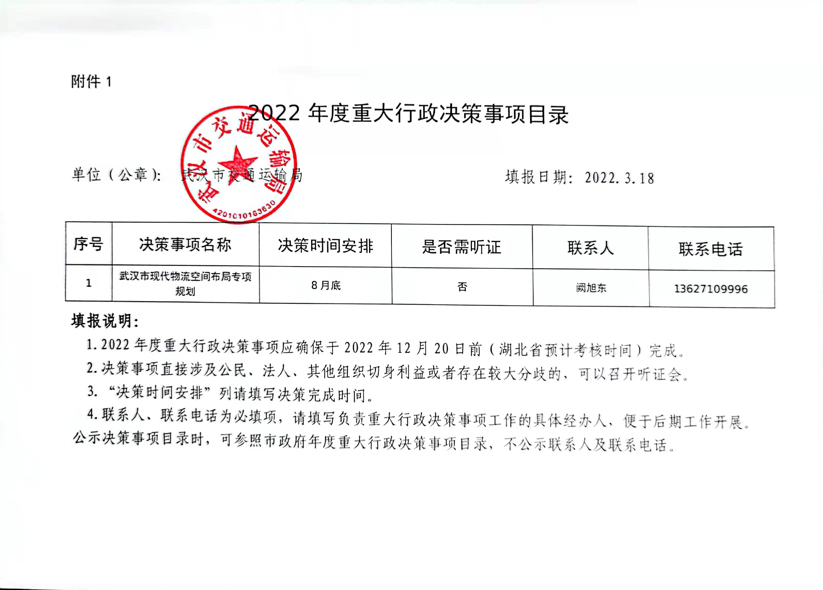 2022年度重大行政决策事项目录